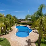 The spacious 90 m² Casa Vista Brejos Apartment Albufeira is nearly a 10-minute ride from the blue flag Pescadores Beach and features a patio with a swimming pool. Located 2.5 km from the Balaia Golf Village, the apartment overlooks the pool.